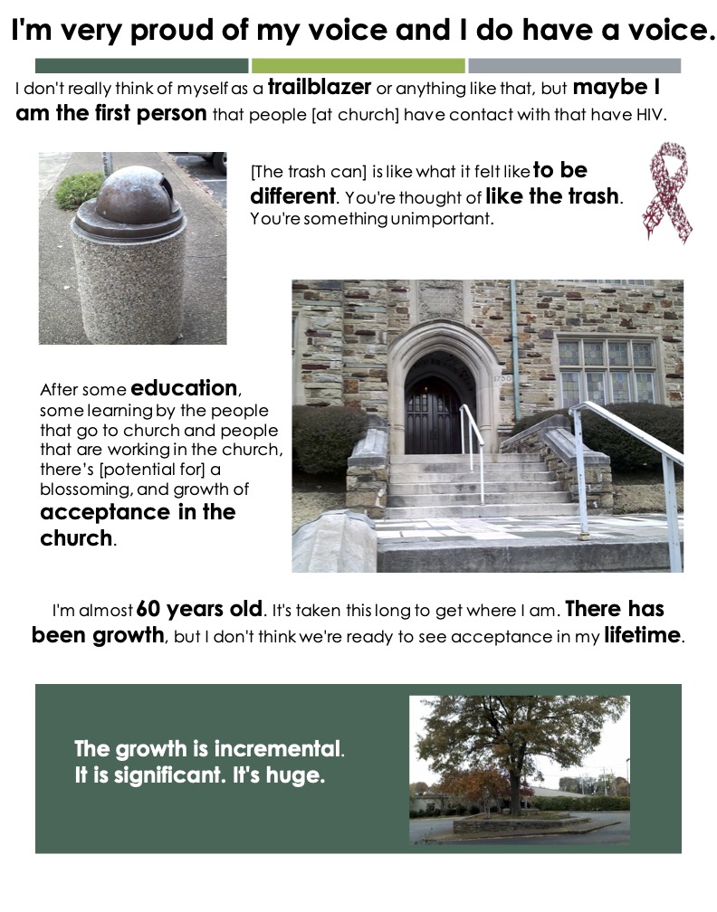I don’t really think of myself as a trailblazer or anything like that, but maybe I am the first person that people [at church] have contact with that have HIV
